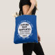 Custom personalized promotional All Over Print CHELSEA BLUE Shoulder Tote Bag, 16" high x 16" wide and 28" long strap, made of 100% sturdy brushed polyester exterior, 100% polyester nonwoven laminate interior, black laminated lining for extra support, and with cotton web handles. Spot or dry clean. Made in the USA. WHITE customizable curved text template surrounding your own uploaded photo, logo, image, and with CHELSEA BLUE #034694 background mask behind text that frames your image upload for fully optimized customization. Make, create your own customized design Tote bags with easy personalised arched, circular, round, text wrap.
