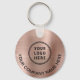Modern promotional keychain for your company or organization with a brushed rose gold faux metallic background. Add your logo, input your website's URL address to create a scannable QR code and add two lines of custom text, such as your company name, business slogan, thank you, etc.
