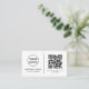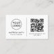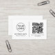 White or custom colour, modern, elegant and professional business card design with template fields for name, company name/title, logo (photo or other graphic), QR code, and contact information including social media icons. Change background colour, move and resize elements with the customization tool.