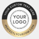 Stickers featuring your custom logo surrounded by a black and golden look (printed image with a brushed metal effect simulated in the artwork) border. Ciustomizable text top and bottom. Move and resize the logo with the design tool. Text, font and font colours are customizable. A great way to create personalized stickers for your business or event