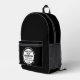 Custom personalized promotional BLACK Backpack. WHITE customizable curved text template surrounding your own uploaded photo, logo, image, and with BLACK background mask behind text for fully optimized customization. This durable Polyester Poplin Backpack is 17 " high x 12.5" wide x 5" deep, has two internal compartments, a laptop storage pouch, an external mesh side pocket, and identification label. Ideal for school trips or group excursion events, travel company promotion and other group orientated business marketing. Make, create your own customized design Backpacks with easy personalised arched, circular, round, text wrap.