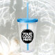 Easily personalize this 16 oz acrylic tumbler with straw and lid with your own company logo and custom text. It's BPA-free with clear double-wall construction. Custom printed tumbler cups with your business logo can advertise your brand as promotional giveaways, corporate gifts, or as drinkware for your corporate events. Available in other colours. The dimensions are 4 inch x 6.25 inch. The straw length is 9.25 inch. No minimum order quantity and no setup fee.