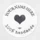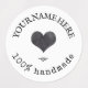 Custom logo waterproof food labels. Cute personalized round rustic stickers with custom typewriter text, leaves decor and an heart. You can change the heart with your logo, image or any decoration. Cute, elegant and very warm food labels.