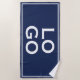 This custom beach towel features a navy blue background with a white frame. A sample logo is placed in the centre. You can personalize the mat and add your own custom company or professional business logo, or your own image of your choice.