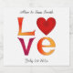 Classic illustration incorporating a hand-drawn central square motif made up of large letters spelling the word LOVE with the letter O replaced by a heart. The lettering is colored in ombre reds and yellows.