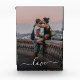 Cute romantic acrylic photo block with Love text written in a stylish elegant typography font. With option to personalize or customize with photo of your choice. Fun keepsake gift, easily customizable with a photograph of your choice. Or cute gift for somebody who works from home, or who just got a new office job.