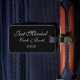 Custom luggage tag shown in black/white with Just Married text. Customize this tag and change names and date to yours. You can even change colours.