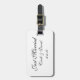 Custom luggage tag shown in black/white with Just Married text. Customize this tag and change names and date to yours. You can even change colours.