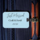 Custom luggage tag is shown with Just Married text and sample names, customize this tag and change the sample names and date to yours with this template.
