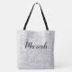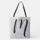 A nice and monogrammed design for a black and grey totebag. A pattern of personalized names of different font styles, with a big initial