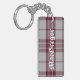 Stylish key chain done in the classic maroon and light grey MacGregor Scottish tartan plaid pattern. Bold white old world style text, on the front and back, is ready to personalize for yourself or as a great gift idea.