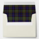 Lovely custom envelope done in cream, with the colourful purple, green, yellow, black, and red clan MacLellan tartan pattern, on the inside of the envelope. Black script text return address, on the back flap, is ready to personalize. Perfect addition to our MacLellan plaid wedding invitation set.