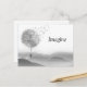 Never stop dreaming and imagining! This custom text postcard features a lovely surreal balloon design in black and white. The picture has a magical hot air balloon flying above the mountains that looks like a large dandelion blowing in the wind. The text says "Imagine" in black script. These postcards are customizable. You can personalize the text, font, and text colour if you wish. Just hit the Personalize button to enter your own text, or hit the Customize button to make any style changes. Makes a special postcard or inspiring decoration! This design is also available on stickers and a notebook.