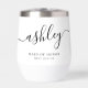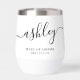 Custom Maid of Honour Script Calligraphy Name Thermal Wine Tumbler. Easy to customize elegant script typography monogram. Perfect wedding party or bridal party accessory gift idea!