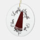 Pretty maroon and white cheerleader ornament, with cute graphics of a maroon and silver tone megaphone and black script graphic text, circling the megaphone and reading, Cheer, Loyalty, Strength, Pride, and Spirit. Personalize the black text, on the maroon and white striped back, for your special spirit leader. Great for the Christmas tree or hanging in her bedroom, and makes a great fan pull too.