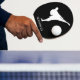 Personalized name martial arts karate kick design ping pong paddle for table tennis. Cool sports / game gift idea for kids (boys and girls). Custom black background colour. Fun present for player and coach / teacher. Nice sporty Birthday or Christmas gift for children; son, daughter, grandchild, granddaughter, grandson, etc. Add your own name or slogan. Kicking fighter silhouette logo. Great for other fight sports like ju jitsu, taekwondo, judo, aikido, kickboxing, jiu jitsu, muay thai etc. Black ninja colour background.