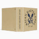 Trendy kraft paper effect with your own name. Elegant big curved letters with graphic logo in the middle.