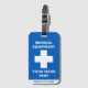Personalized Medical handle with care Luggage Tag in blue. It is perfect for anyone transporting medical equipment, for a medic, a health professional or a diabetic. The perfect luggage identifier to display on your luggage and have everyone handle with care. This medical alert label will keep your medical equipment easy to identify.