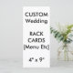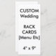 Custom Menu & Program Rack Cards, printed on bright white cover weight (100 lb.) card stock with a gloss finish, high quality, full-colour, full-bleed printing. 4" x 9" (portrait) or 9" x 4" (landscape) options. Minimum 25 card order. Up to 50% off for bulk orders.