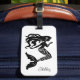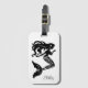 Custom luggage tag is shown in a black and white fancy mermaid print and has a card slot on the other side.