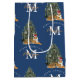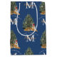 Custom Merry Christmas Monogram Tiger & Tree Blue Medium Gift Bag