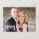 Dites Joyeux Noël dans le style avec cette carte postale personnalisée photo de vacances. Personnalisez avec votre nom et votre propre message sur le dos. Grand message blanc cursif "Joyeux Noël" sur le devant inférieur.