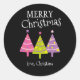 Custom Merry Christmas Pink Trees Classic Round Sticker