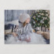 Elegant and simple, custom photo holiday postcard with beautiful "Merry Christmas" photo overlay in modern calligraphy, with ability to "move and drag" to any position to suit your photo best by selecting customize further, and using editor tool, with link button located at the end of template text boxes. Simply select "front" layer from layers menu, where you can "grab" the Merry Christmas phrase from the screen, and "move" to any place you like! click on "done" top corner button once finished. Use template text boxes to fill in your personal message and return address on the back. Same postcard design also available with lettering in real foil.