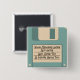 Remember floppy discs? This square shaped button or pin is a blast from the past with its illustration of a light blue computer floppy disc. Use the template fields to easily add your own message to the disc's label area. This coordinates with other items in our Old Tech collection from Asterisk Designs. Makes a fun gift for geeks and computer nerds of all ages.