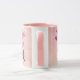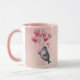Happy Valentine's Day romantic mug with a personalized message and a cute seal illustration with heart balloons. Pink background design.