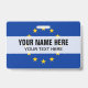 Custom metal clip badge with European Union flag. Plastic tags with metal clip on and lanyard cord option. Customizable text. Add a photo on the back optionally. Useful ID tags for office, volunteer work, events, meeting, gathering, party, festival, sports teams, clubs, political delegation and more. EU flag with yellow stars. Transparent overlay.