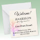 This colorful welcome gift bag mini card is 2.25-inches with empty space on back for a handwritten note. The background is floral white. Easily customize this card using the Design Tool template provided. You'll have the option to edit font color, size, style-- and more. Choice of rounded corner style card, other sizes and paper types. Made and Printed in the USA.