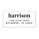 Custom return address rubber stamp with your name in a bold minimal modern font.