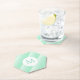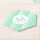 Custom Mint Green Stripes Modern Monogram Template Trendy Hexagon Form Paper Coaster.