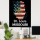Unique St. Louis, Missouri poster features a vintage state flag and the state nickname. It’s a great way to show your hometown patriotic pride. Personalize this product with your city, you can also change the background colour and font.