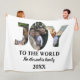 Custom modern 3 photo collage joy to the world. Personalize with your photos, family name and year
