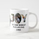 Custom modern 3 photo collage joy to the world large coffee mug