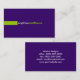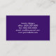 A modern design with a green rectangle centred to the left side on a dark purple background with white text for the first name and matching green for the last name. The purple background colour can be changed when customizing, click "edit" then "background" then choose your colour. Text colour and font may also be changed. Additional information is on the back side of card.