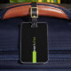 A simple modern design. A black background with a simple light green rectangle located on the far left and centred. The colour of the green rectangle on the front, the green text and the green stripe on the back can be changed, when customizing change the background colour to change the colour of the green rectangle, then change the colour of the green text on front and back to match it, if you have any questions on how to do this I would more than happy to help!
