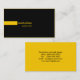 A simple modern design. A gold rectangle and text on the front and black text on a gold background on the back.