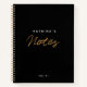 A simple minimalist black background and gold script text notebook that can be customized to your name and volume number. An ideal gift for anyone at any age. Keep all your notes and reminders all in one book. Change the volume number and make it a series! Great gift for anyone who loves notebooks, writing, journalling etc. Customize the text and make it your own.