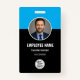 This modern employee ID badge features a striking blue and black color scheme, perfect for corporate environments. The design includes space for a photo, employee name, title, and ID number, ensuring easy identification and security. On the reverse, a QR code can be added for quick access to digital information, along with issue and expiration dates, and return instructions. The sleek design communicates professionalism and efficiency, making it an essential tool for any business looking to enhance its security and branding.