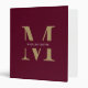 Personalized Modern Burgundy Gold Monogram Office School 3 ring binder
