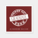 Modern burgundy red graduate paper napkins feature a white "class of" wording inside a circle that looks like a stamp. Simply enter the graduate’s name and graduation year. You can change the background colour by clicking on the customize button.