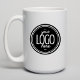 A personalized two-sided branded coffee mug with your business's professional logo on it. Just fill in the black round placeholder image space with your company's logo.