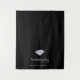 A custom black handmade jewellery modern printed tapestry that can be customize to a table runner for your pop up shop. Customize the table runner with your business modern text and create your own table runner for your craft shows and vendor events. Perfect for trade shows, pop up shops, expos etc. Ideal for handmade jewellery workshops, jewellery vendor booths, handmade fashion accessories and more. Simply customize text and your own image or leave the diamond image as is.