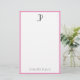 Custom Modern Elegant Monogram Minimalist Template Pink And White Stationery Paper.