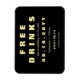 Modern and funny "Free Drinks" save the date magnets featuring bold and modern typography. Personalize the design by replacing the text with your details. Please contact the designer if you have any design customization requests.