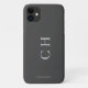 Personalized name and initials design on dark grey background iphone case, perfect for birthdays or any special occasion. This custom case allows you to add a name and initials, making it a unique and personalized gift or as a treath youself. Sleek typography, it combines modern style with functionality.