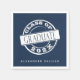 Modern navy blue graduate paper napkins feature a white "class of" wording inside a circle that looks like a stamp. Simply enter the graduate’s name and graduation year. You can change the background colour by clicking on the customize button.